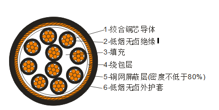 低煙無鹵屏蔽電纜DWZ-KYJYP-24*1.5適用于額定電壓450/750V及以下,有低煙、無鹵阻燃要求作為控制監(jiān)控回路等場合使用。